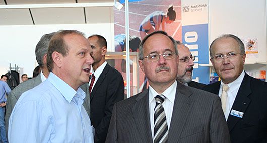 Bundesrat Samuel Schmid besucht die durch den ZSS oragnisierte Sonderschau «Sport in Zürich» im Rahmen der «Züspa». Die Sonderschau wurde ab 1995 durch den ZSS organisiert und bot den Stadtzürcher Sportvereinen die Möglichkeit, sich auf der Showbühe dem Messepublikum zu präsentieren. Die Züspa fand 2018 zum letzten Mal statt, Messebetreiberin MCH Group verkündet nach 69 Jahren das Ende der Herbstmesse.