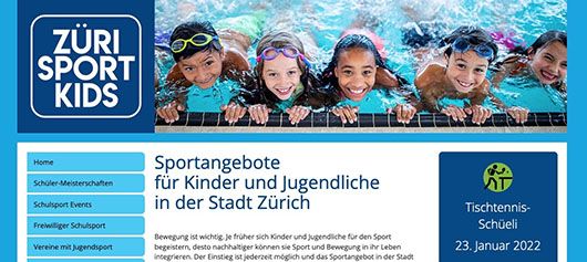 Mit der Website zuerisportkids.ch schafft der ZSS eine Plattform für Eltern, Kinder und Lehrpersonen, die sich rasch und einfach eine Übersicht über alle städtischen Sportangebote für Kinder ab 5 Jahren verschaffen möchten.